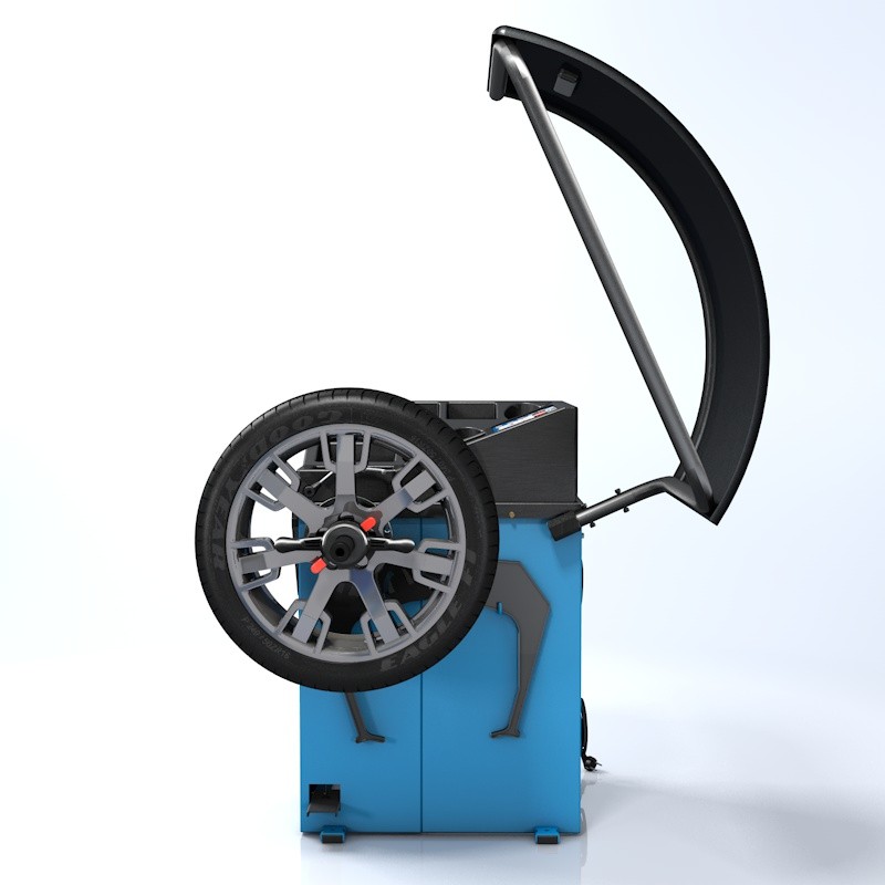 Radschutzhaube Kann mittels Ein/Aus Schalter auch ohne Radschutzhaube betrieben werden. Automatischer Start / Stop des Auswuchtvorganges beim Schließen oder Öffnen.