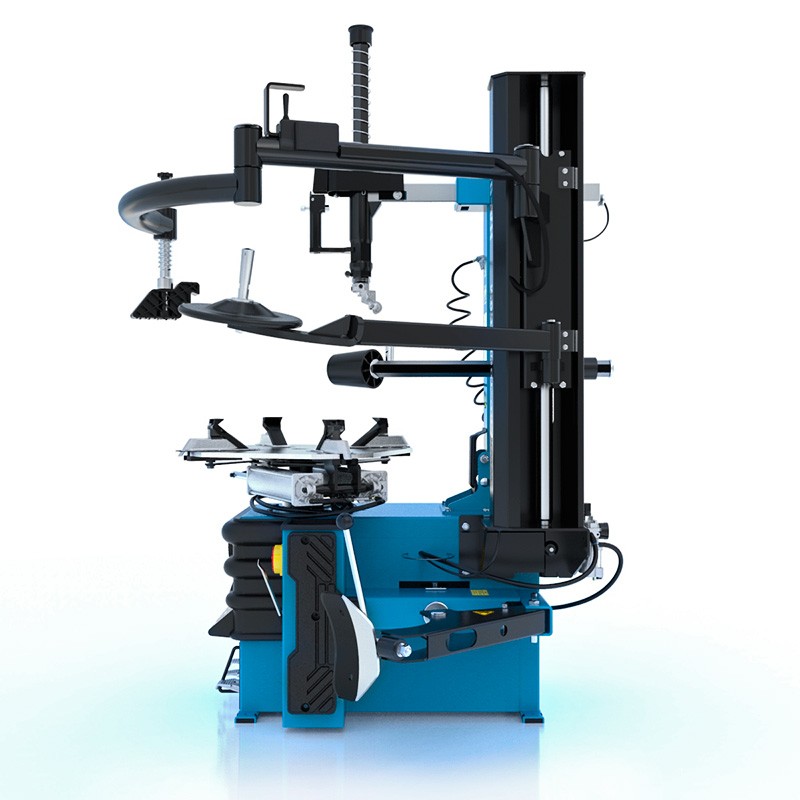 Vollautomatische Montageschwenksäule Speziell entwickelt für ein einfaches und effizientes arbeiten. Der Montagearm klappt nach hinten, dies ermöglicht Ihnen eine schnelle und effiziente Montage von sehr breiten Reifen.