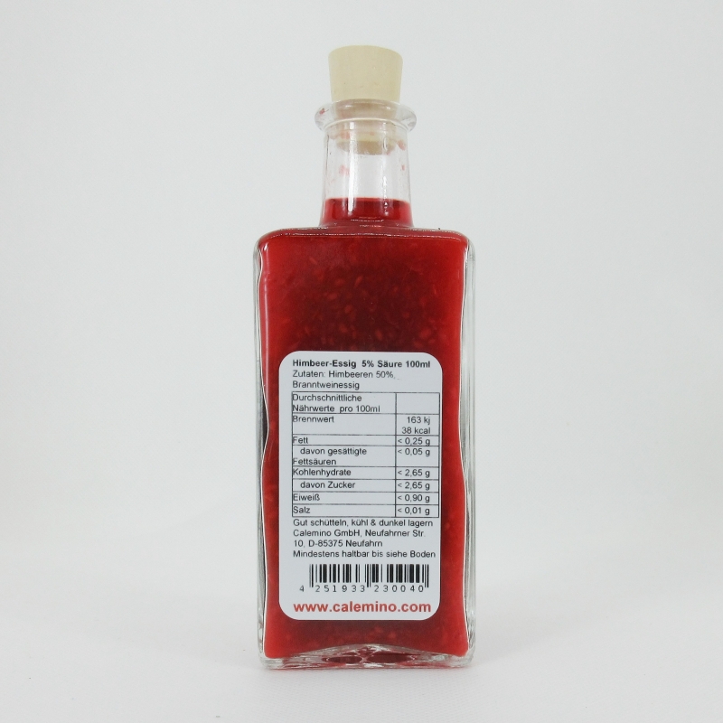 Sonnenverwöhnte und intensiv duftende Himbeeren verleihen diesem Essig einen ganz besonderen Farbton mit kräftigem Beerengeschmack. Veredelt in einem natürlich gewonnenen Branntweinessig ohne Konservierungs- oder Farbstoffe, ohne Aromen oder Geschmacksverstärker, ohne Emulgatoren oder Zucker / Süßstoffe. Nicht gefiltert, sondern ein naturtrüber Essig für ungetrübten Genuß. Im Faß gereift mit kleinen Fruchtstückchen, die jedes Gericht bereichern. Hier schmeckt man die reine Natur. Schon beim Öffnen der Flasche entströmt ihr ein besonders appetitlicher Duft. Durch den hohen 50% Fruchtanteil entsteht ein intensiver Geschmack, der Ihren Speisen eine fruchtige und aromatische Note verleiht. Von der Herstellung über die Faßreifung bis zur Abfüllung sind alle Arbeitsschritte liebevolle Handarbeit und keine maschinelle Massenproduktion. Es werden hierbei keine unnötigen und überflüssigen Stoffe hinzugefügt. Nur natürlicher Essig, reife Früchte und Zeit zum Reifen im Faß, mehr braucht ein guter Essig nicht. So erhalten Sie ein reines Naturprodukt von höchster Qualität. Vielseitig einsetzbar in der Küche, egal ob für frische gemischte Salate, Fisch- oder Fleischgerichte und sogar für Süßspeisen. Salate werden durch die Fruchtstückchen im Geschmack intensiviert. Der Essig ist auch perfekt als Marinade verwendbar. Für gelungene Grillabende das Fleisch einfach über Nacht einlegen, das Fleisch wird besonders zart und bekommt eine feine Fruchtnote. Besonders Wildgerichte bekommen ein ganz außerordentliches Aroma. Oder einfach ein paar Spritzer über Süßspeisen wie Eis, Cremes, Obstsalat oder Pfannkuchen geben. Besonders an heißen Sommertagen herrlich erfrischend als selbstgemachte Limonade mit Wasser aufgegossen und mit Zucker verrührt. Aber ganz besonders geeignet ist unser Himbeeressig für Blatt- und Mischsalate wie Endivien- und Chicoréesalat, da sich hier ein schöner Kontrast zu den Bitterstoffen des Salats ergibt. Auch Lammgerichte und Fisch profitieren vom leicht süßlichen Aroma des Himbeeressigs. Oder Sie schmecken mit etwas Himbeeressig asiatische süß-saure Speisen oder Saucen ab. In unserer handlichen und preiswerten 100ml Probierflasche mit Spitzkorken. Die außergewöhnliche Dreiecksform unserer Flasche läßt besonders schöne Farbspiele zu. Auch als kleines Mitbringsel immer willkommen. Unsere Spitzkorken sind reine Naturprodukte aus nachhaltig orientierter Ernte. Sie wurden aus einem Stück aus der Rinde geschnitten, anschließend bei mehr als 65 Grad (Kerntemperatur) für mehrere Stunden erhitzt und sind somit thermisch desinfiziert (keine Gifte und Chemikalien, nur Hitze).