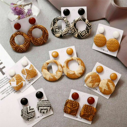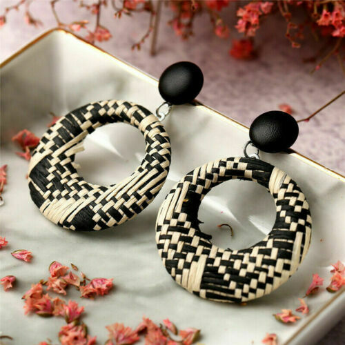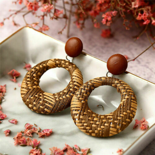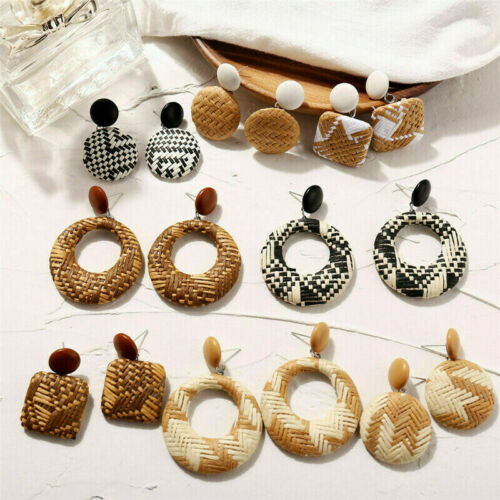 Package Included: 1 Pair Fashion Weaving Rattan Dangle Drop Earrings