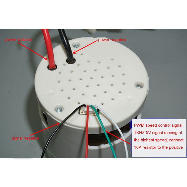 l When the motor is directly started, as long as the PWM green signal line is connected in series with a 10K resistor, it can run at the highest speed. For direct start, the line must be connected and then energized, otherwise the motor will not rotate. (Motor thick wire red positive, motor thick black negative)