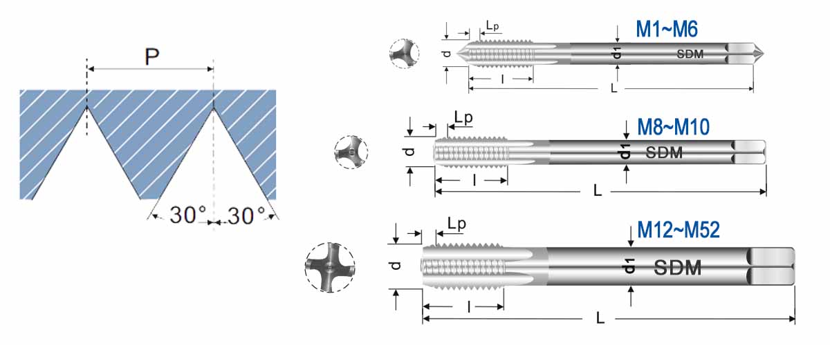 | M8 | 1.25 | 8 | 25 | 9 | M30 | 3.5 | 30 | 65 | 25 |