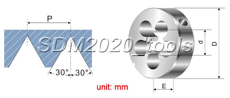 | Type | pitch (mm) | d (mm) | D (mm) | E (mm) | Type | pitch (mm) | d (mm) | D (mm) | E (mm) |