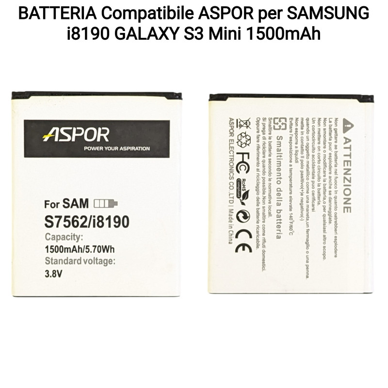 BATTERIA Compatibile ASPOR per SAMSUNG i8190 GALAXY S3 Mini 1500mAh