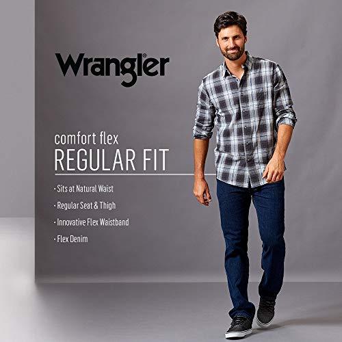 PRODUCT DESCRIPTION Wrangler Authentics Men's Regular Fit Comfort Flex Jean. This versatile jean is constructed with durable materials built for long-lasting comfort and added range of movement. Made with a regular fit, this jean sits at the natural waist and features a regular seat and thigh. FEATURESComfort Stretch Denim. Durable flex denim for added stretch in Fit. Regular seat and thigh and sits at the natural Style. Classic five-pocket style Waist. Flex waistband for added comfort and Closure. Heavy-duty zipper fly with button closure.