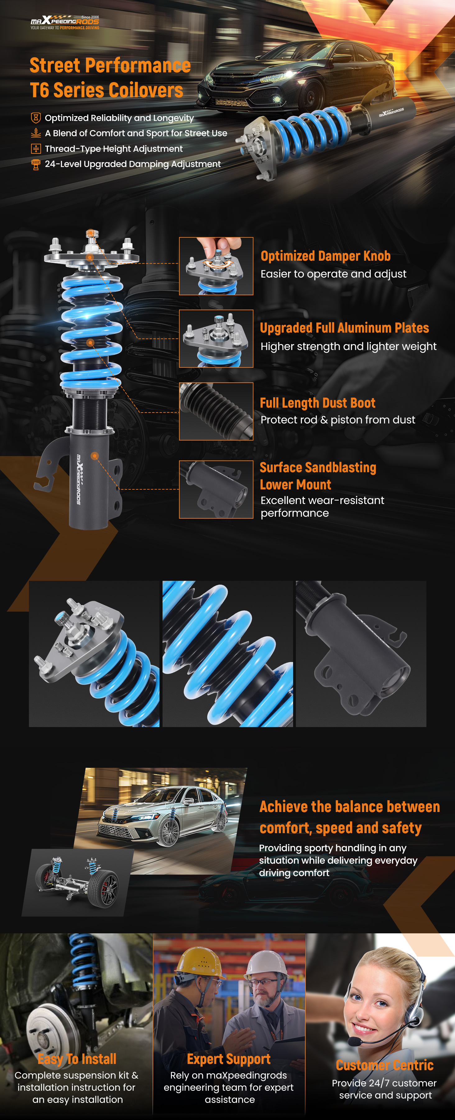 7. All inserts come with fitted long rubber boots--- To protect the damper more well and be durable.
