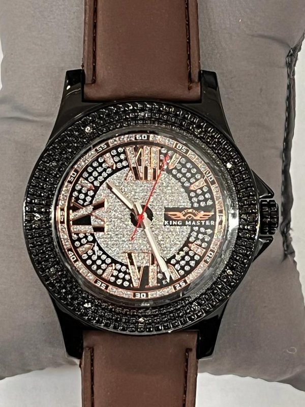 Watch Information: Gender: Men's Case Size: 48mm Dial Color: Silver/ Rose Gold Material Band: Leather's Movement: Analog Quartz Water Resist: 30 Meters Water Resistant Features: 0.12ct Diamond Additional Info: Packaging: Generic watch box