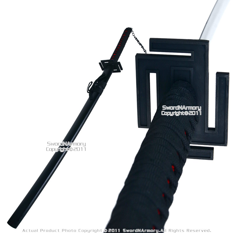 White Fantasy Japanese Anime Sword Samurai Katana Rukia This is the Anime Sword of Rukia. Wield the sword of the Soul Reapers. The sword features a bell and streamer on the handle, chemical fiber ito and sageo and synthetic ray skin, giving it an authentic look. The blade is stainless steel with an aesthetic hamon. |