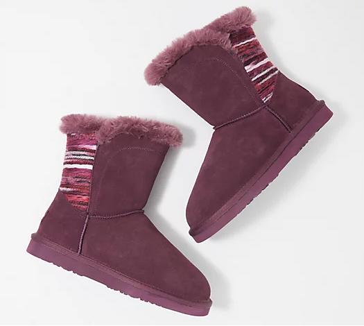 A show of hands (and feet) please, who's ready for a winter re-boot? Lamo's got this one with a cuddly lined, mid-shaft boot that pops a free-spirited yarn detail. (It's bringing some welcome boho to our outfit mojo!) But wait! They're not just a party in the back. These beauts also mean business because they're crafted in hardworking suede that's water- and stain-resistant. So, if you're thinking gifts, they're a no-brainer for that family member who's been known to spill her morning latte (not naming names) or the friend who's finding fun these days in the great -- but sometimes damp -- outdoors. Just a little wipe, and they're good to go for her next adventure. Water- and stain-resistant suede upper, side zipper, back-shaft yarn detail