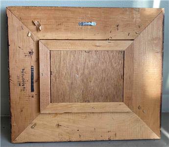 Oil on board measures 5" x 7", and with the original layered wood frame, measures 13" x 15".