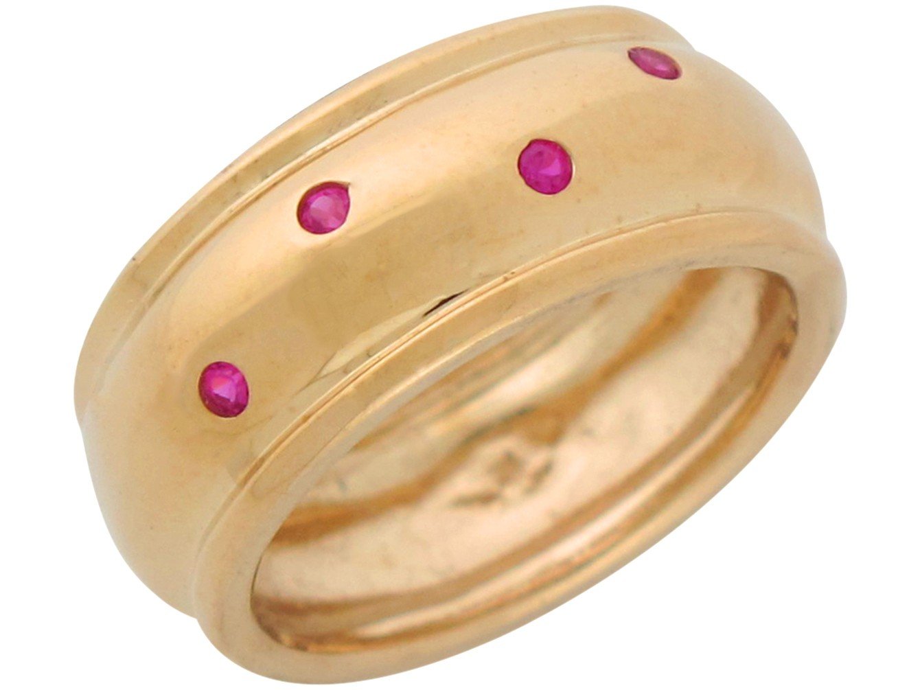 10k or 14k Yellow Gold Real Ruby Accented Domed Cigar High Polish Ladies Ring