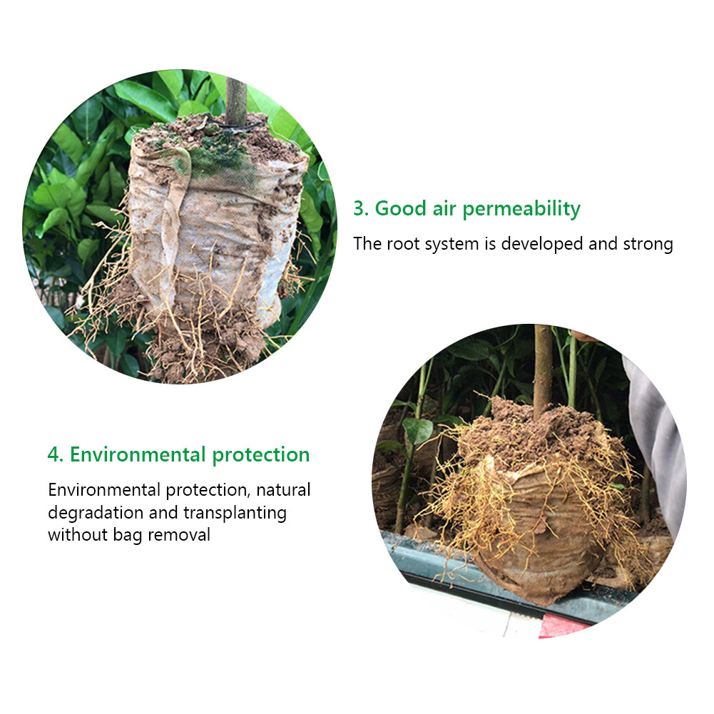 Eco-friendly breathable and biodegradable non-woven material, no need to remove the bag when transplanting, improving the plants survival rate.
