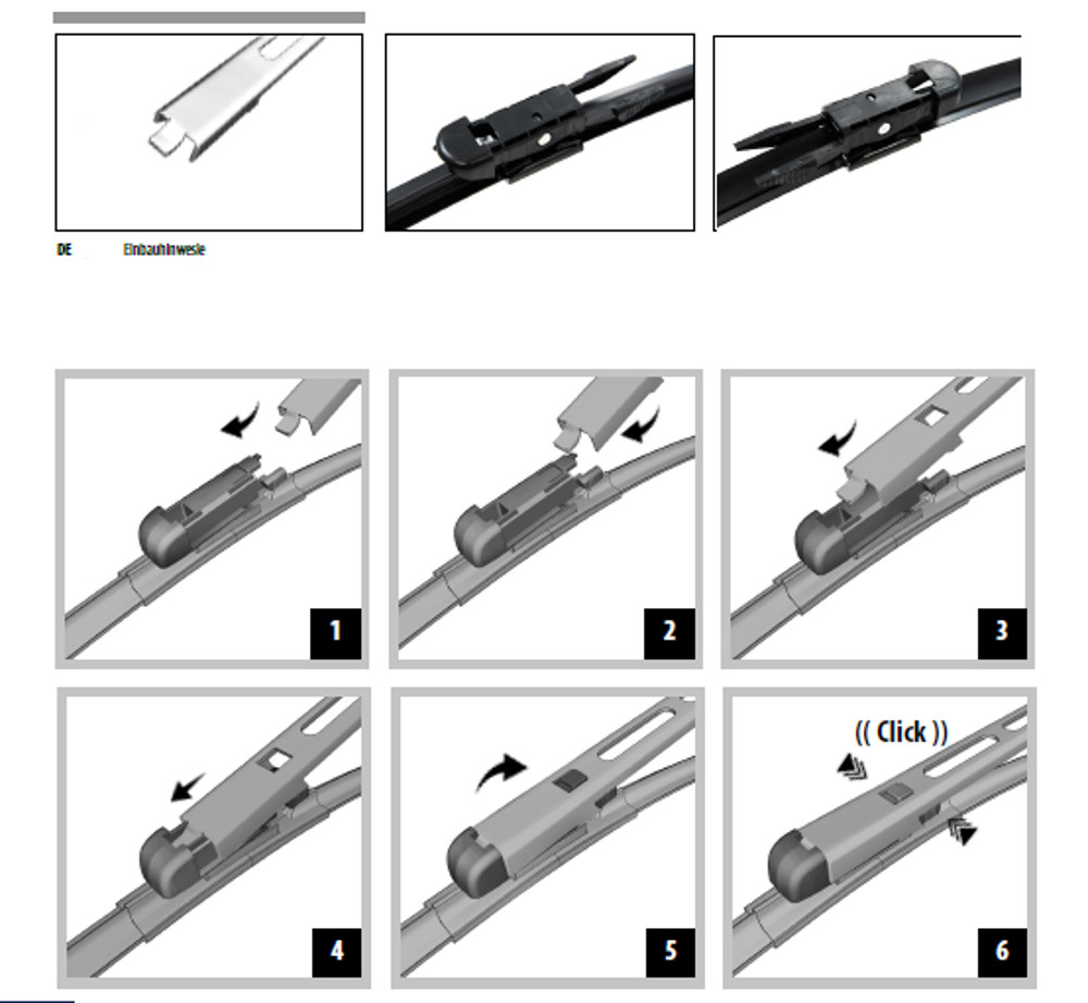 Leichte und schnelle Montage der Scheibenwischer gewährleistet durch eine Spezialhalterung, die an die vom Autohersteller vormontierte Halterung passt.