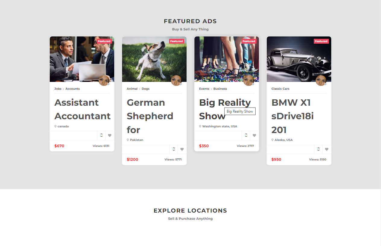 Perfect for starting an ad classified site like Craigslist or KSL Classified. Fully built All-in-One Classified Ads Website with advanced features needed to run a successful website. Supports multiple languages and mobile devices. Manage listings, categories, locations, and users easily from the admin control panel. Earn money by charging users to publish listings. Includes free installation and one-year hosting. Features: