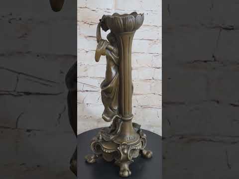 Immerse yourself in the enchanting charm of this meticulously crafted bronze candelabra, a magnificent homage to bygone eras. Skillfully cast in solid bronze, this masterpiece features intricate hand-painted and antiqued accents that gracefully enhance its fluid contours and opulent design. Conjuring the ethereal allure of the Art Nouveau movement, this candelabra evokes a sense of dreamy sophistication, instantly becoming the centerpiece of attention.