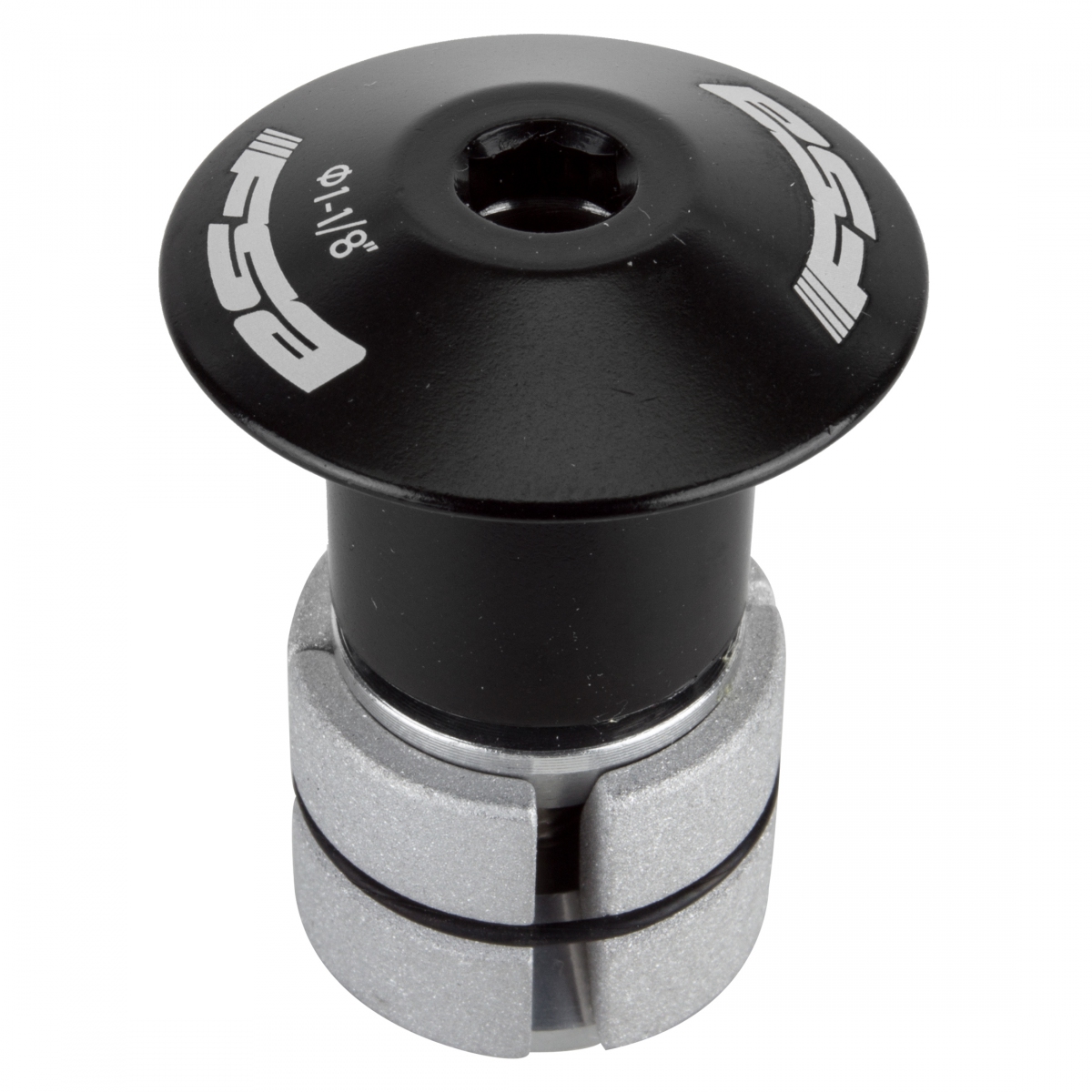 Enhance Your Carbon Bike Steerer with the FSA Compressor 1-1/8" Black Expander Plug and Top Cap