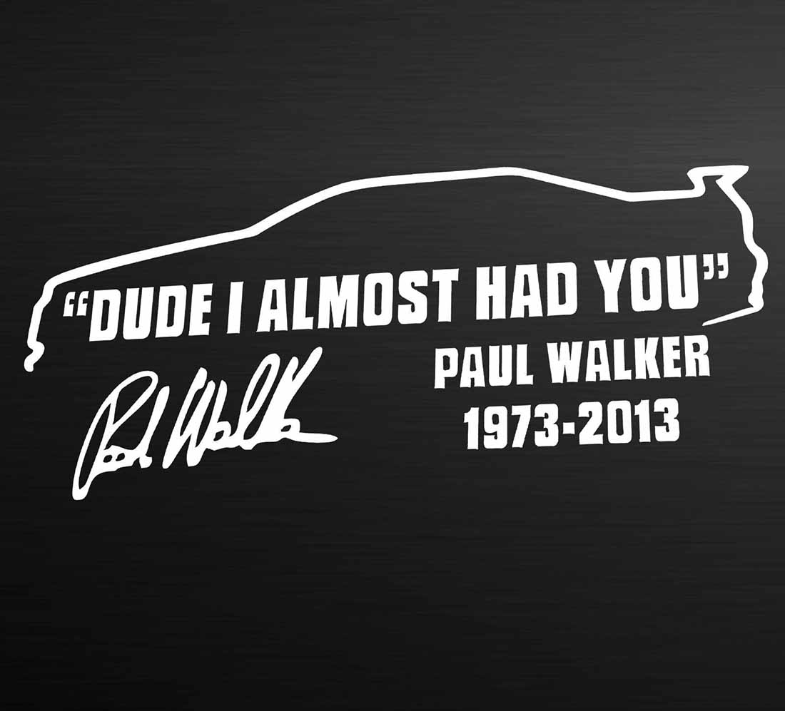 DUDE I ALMOST HAD YOU PAUL WALKER Car Window JDM Novelty Decal Sticker White