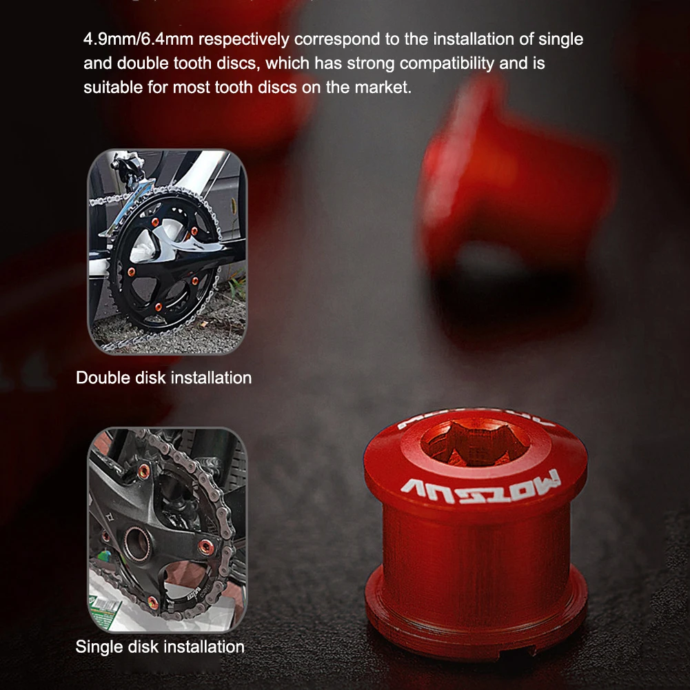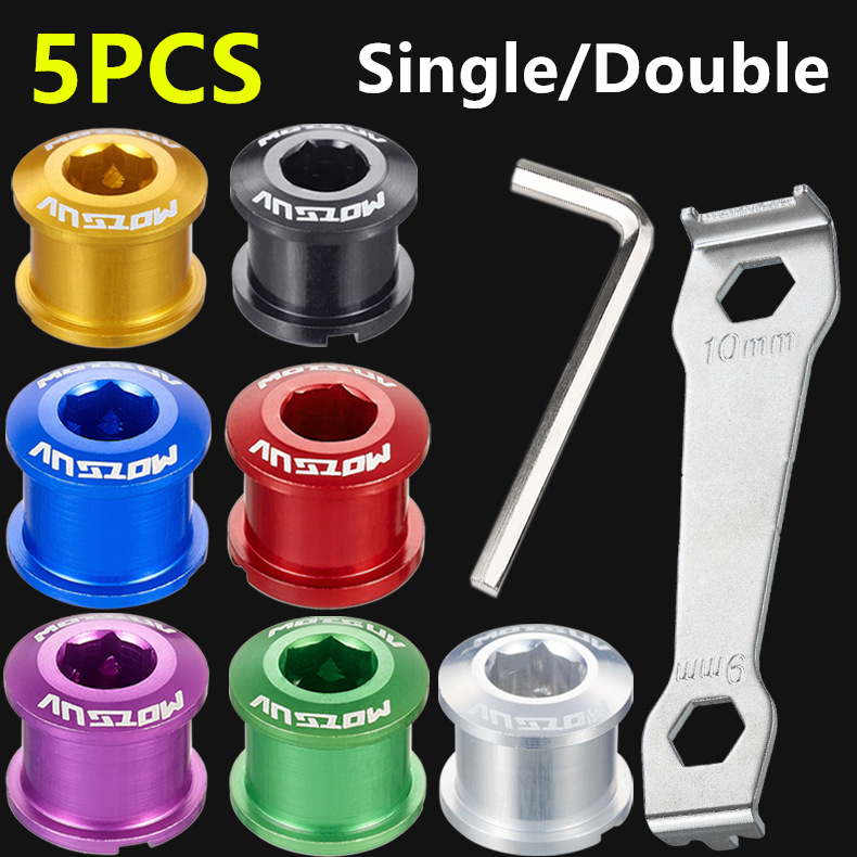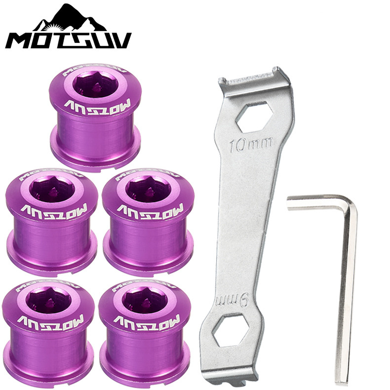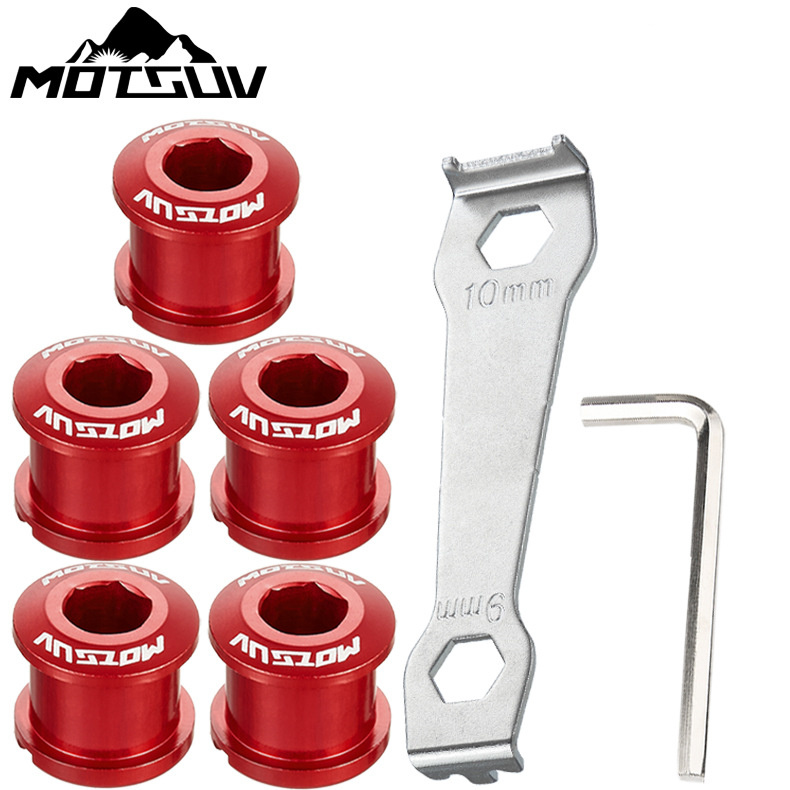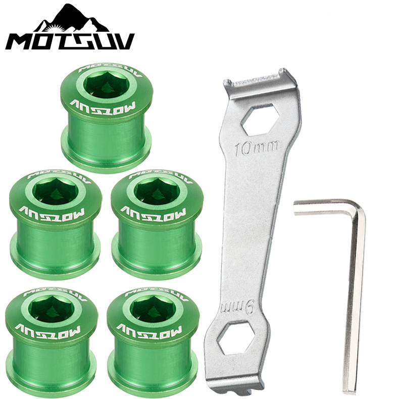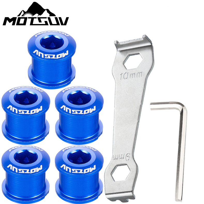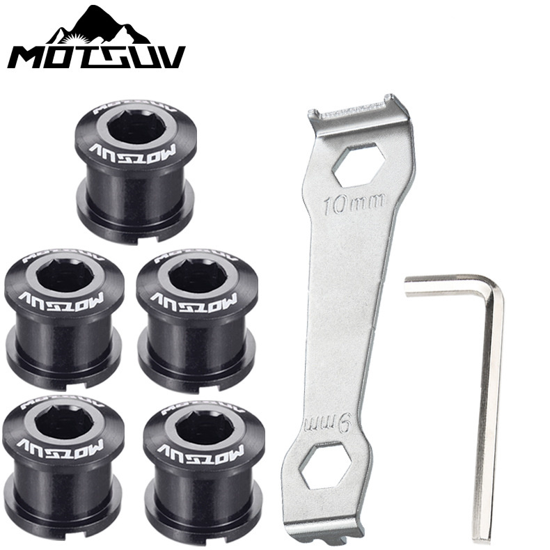 MOTSUV 5pcs MTB Bicycle Chainwheel Bolts Cycling Chainring Bolt Aluminum Alloy Bike Disc Screws with Nut Wrench Tool for Crankset Parts