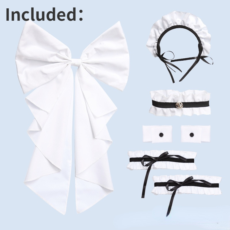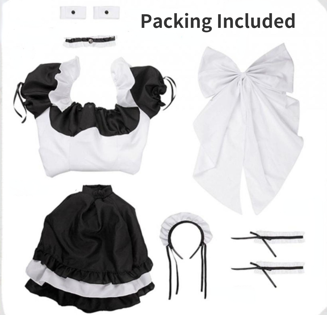 Packing Included:1*top+1*dress+1*bow+1*hairband+2*leg ring +2*bracelet