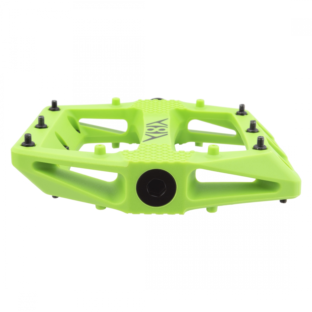 The green colorway adds a vibrant touch to your bike, making a statement on the trail or city streets. With optional foot retention straps, these pedals provide versatility for various riding disciplines, from fixed gear urban commuting to mountain adventures. Their sleek platform profile ensures compatibility with various footwear, offering secure footing whether you're cruising or tackling technical climbs.
