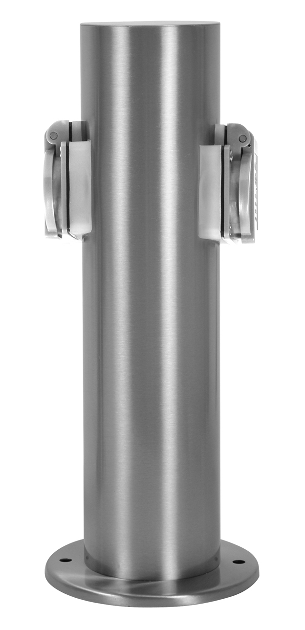 -2er Steckdosensäule, runder Edelstahlkörper, inkl. 2 Steckdosen, max.