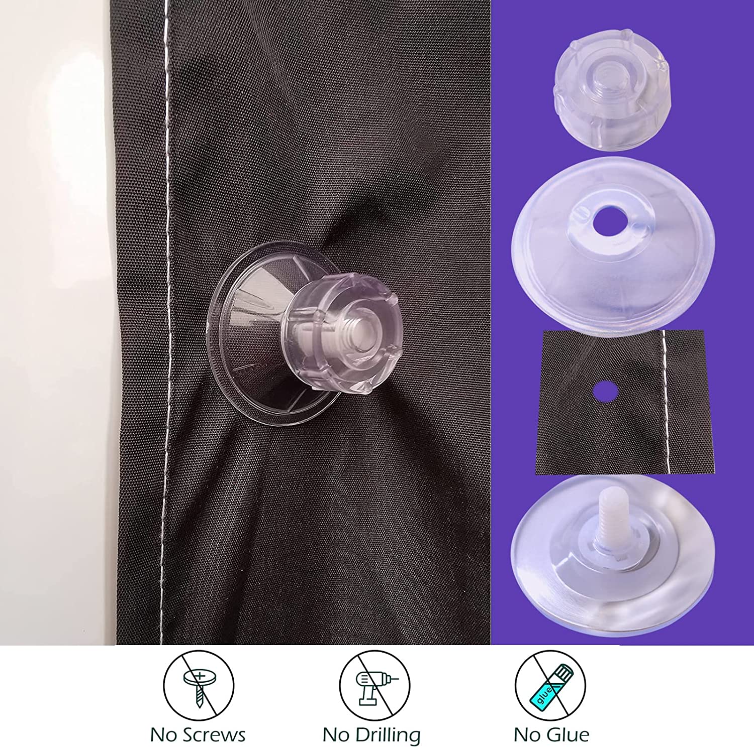 【Easy to Install】: By tightening the screw cap operation, pull the sucker and suck on the smooth surface.Simple way to attach the limpet through the pre cut holes in the awning