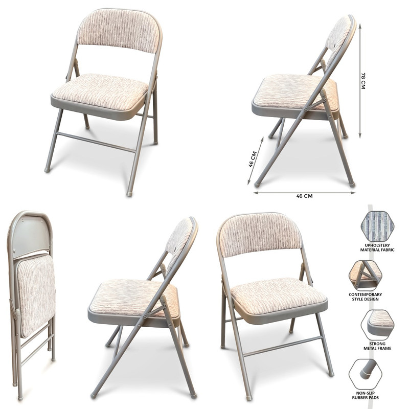 Contemporary style, comfort, decent color, quality and light weight are the key features of Denny's upholstery fabric material padded folding chair with a strong metal frame for office, home, and garden. This computer desk backrest chair needs no assembly required and can be folded flat for easier storage and transport. This product is lightweight and can be moved and carried easily when needed. This product is ideal for when you need an extra spare chair and is great for use both indoors and outdoors. These chairs can be easily used at schools, desks, offices, bedrooms, events, village halls, computer desks, and much more. It features a backrest for extra comfort and support and can be folded and unfolded in just seconds. This product is really sturdy on the floor with floor-protected rubber pads on the frame and easy to use, transport, store and clean.