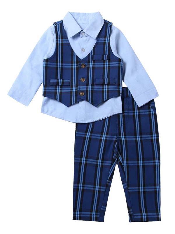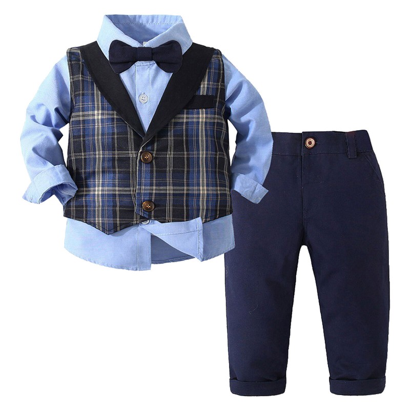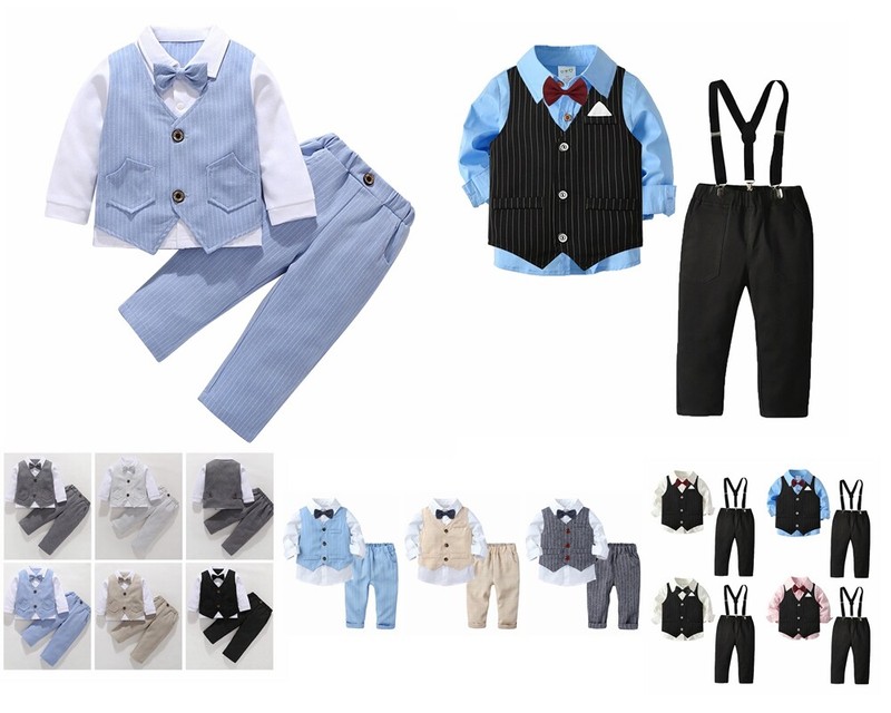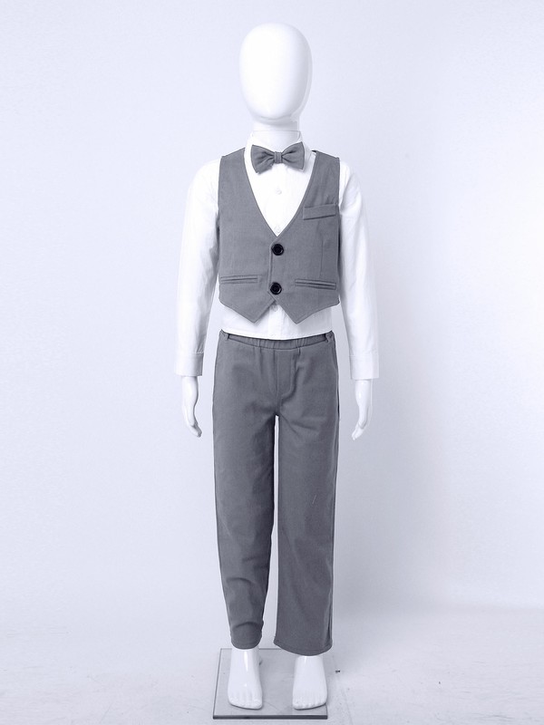 Set Include: 1Pc Boys Shirt, 1Pc Vest, 1Pc Pants, 1Pc Tie Knot