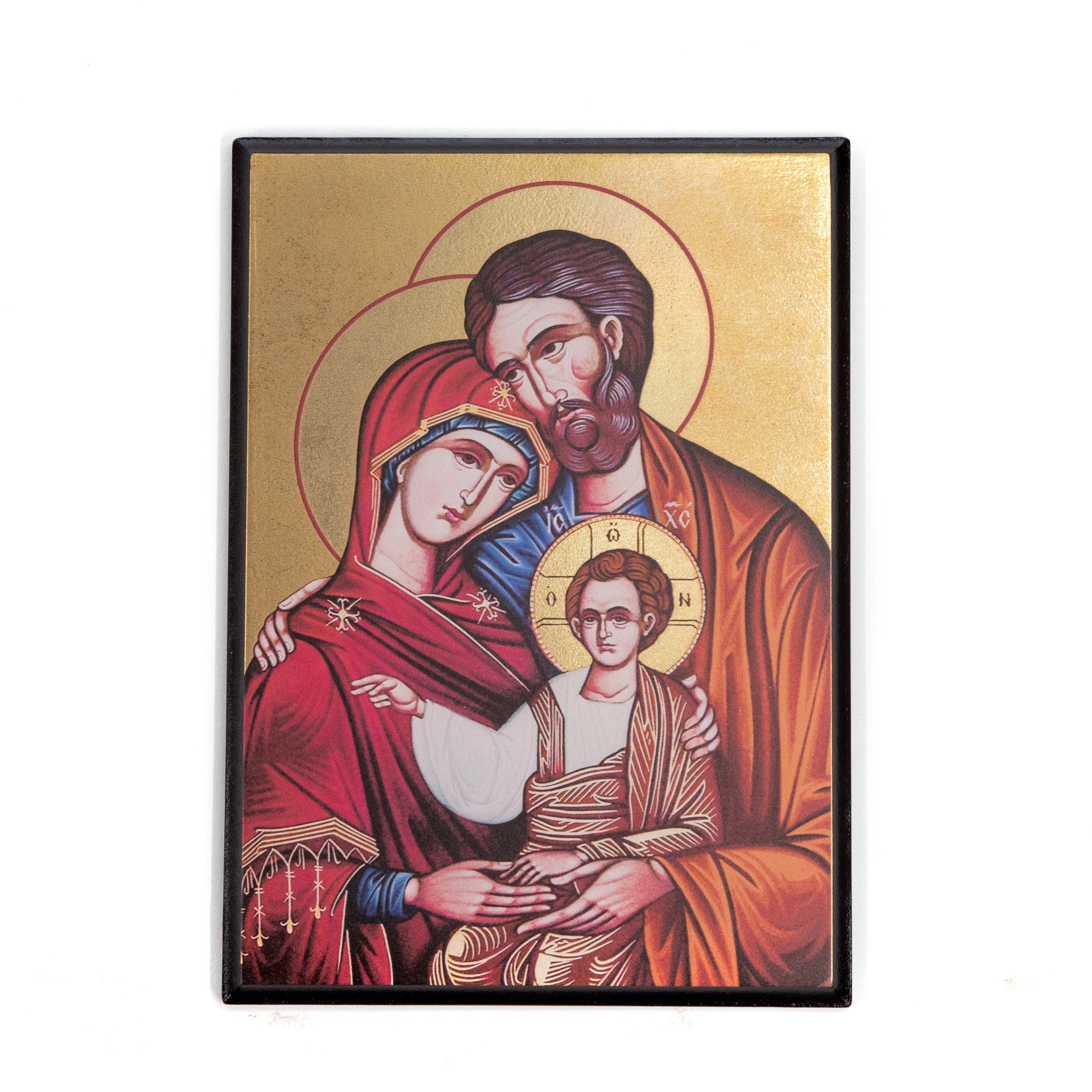 Quadro sacro Icona con spessore di 12 mm realizzato con tavola di Legno mdf laccato effetto noce.