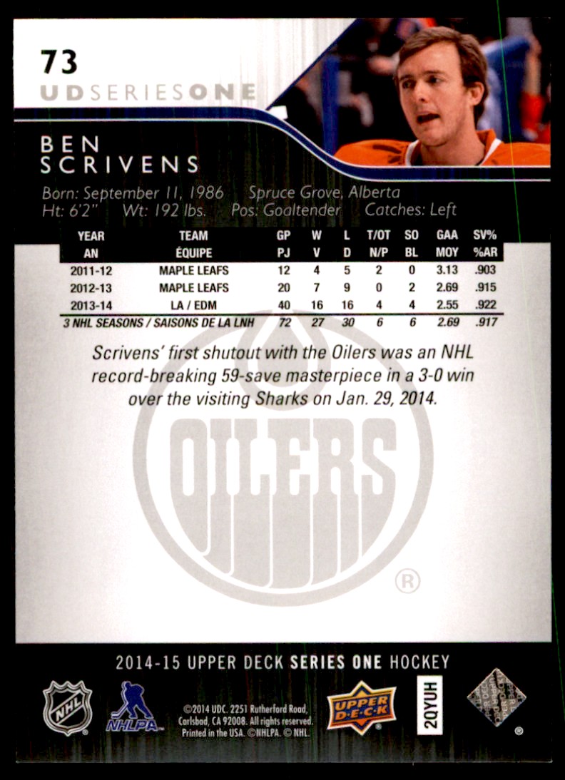 2014-15 Upper Deck 73 Ben Scrivens