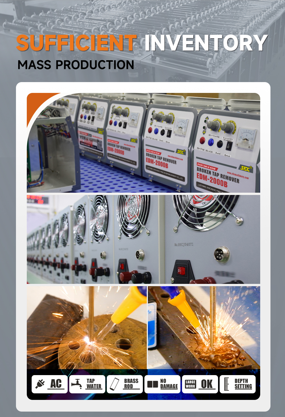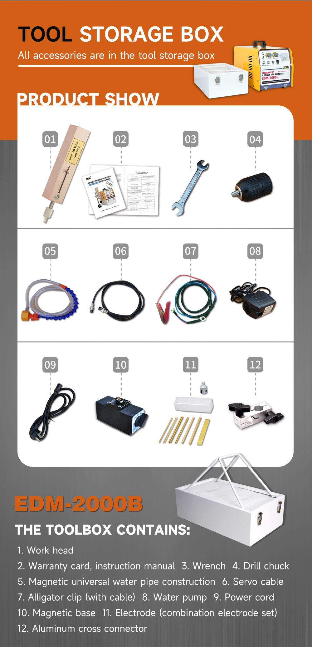 The EDM-2000B Portable Tap Remover machine can fast remove M2-M30(5/64'' to 1-3/16″) broken taps, drill, drift, etc., without damaging to the work piece.