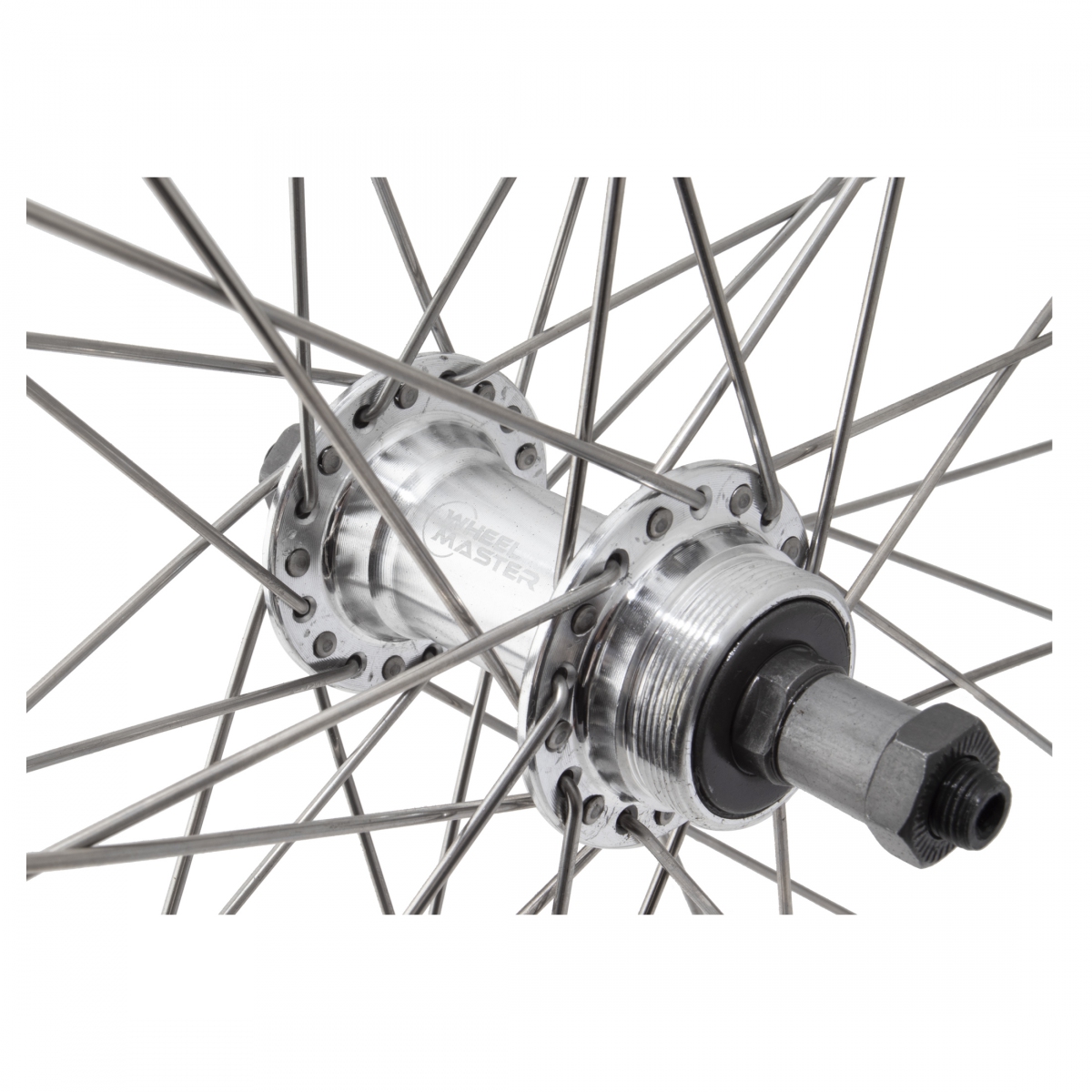 Designed for versatile use across 5, 6, and 7-speed freewheels, this Rear Wheel is perfect for commuter bikes, touring, and recreational riding. Its sleek Silver NMSW rim and hub colors complement a variety of bike styles, providing a clean and professional look. Whether you're tackling daily commutes, leisurely rides, or light touring, the Wheel Master 27-inch Rear Wheel offers reliability and performance in every mile.