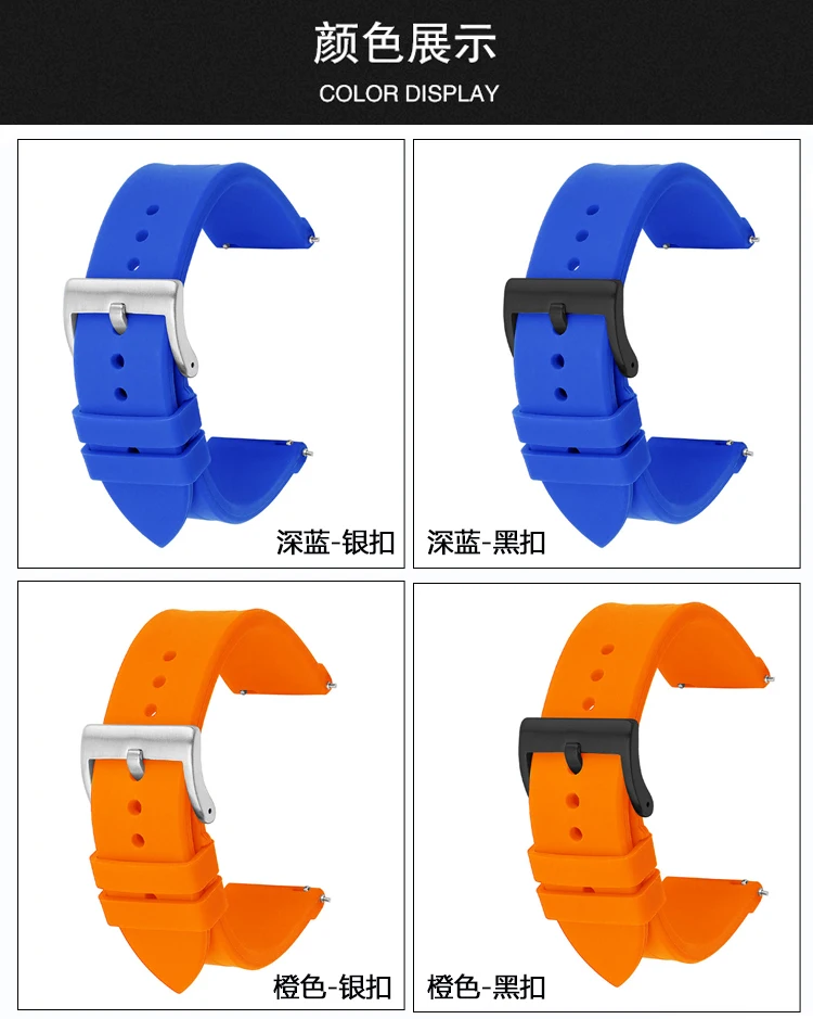 100% Brand new, quick release silicone strap with stainless steel buckle.