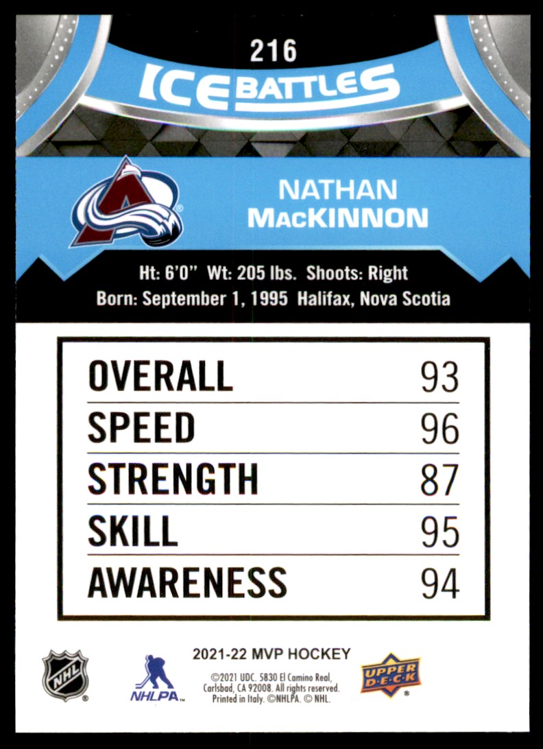 2021-22 Upper Deck MVP Ice Battles 216 Nathan MacKinnon