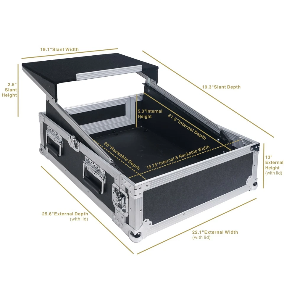 The Sound Town STMR-2ULT is a 2U rack case that comes with a 11U slant top and laptop platform. The gliding platform allows you to move it back and forth with your laptop or tablet on it, while keeping the mixer underneath. The slant top rack features 11U rack spaces and the bottom vertical rack comes with 2U spaces, with 20.7" rackable depth. The case is built with heavy-duty plywood, industrial-grade latches and casters and keeps your equipment from bumps and bruises of lading in and out. |