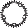 Wolf Tooth was first to market with Cyclocross 1x specific chainrings because we saw Cyclocross as the perfect use for our Drop-Stop technology. Since their release, the uses for these rings has expanded beyond Cyclocross to commuting, gravel riding, mountain bikes with 5-arm crank power meters, and even full on-road applications with the giant 50t rings. . Fits 110 BCD 5 arm cranksets. Drop-Stop technology. On Wolf Tooth s patented wide/narrow chainring, the wide side of the tooth has maximum contact on the drive side which spreads the load and improves chainring life. The narrow side allows clearance for mud and debris which reduces friction. Alternating wide/narrow tooth pattern prevents chain derailment. Compatibility These rings are for use with 110 BCD 5 arm cranksets. Stock 2x bolts will not work. You will need bolts like our 6mm bolts which are optimized for single ring mounting. Chainline - varies - these rings can be mounted in either the big or small ring position on a double cranksets. The most common mounting is in the big ring position because of chainstay clearance. The ring centerline is ~2mm from the ring's mounting face so they usually sit about 2mm closer to the frame than the stock big ring (depends on the stock ring) For Sram cranks wih the hidden bolt you will have to remove the hidden bolt from the Sram chainring and install it in the Wolf Tooth chainring . Recommendations Recommend the use of a clutch style rear derailleur for the best chain security. If you plan to ride in very muddy conditions, we recommend a chainguide or chainkeeper in addition to a clutch-type rear derailleur! Without these precautions, you may experience chaindrops and/or chainsuck. Related Products Chainring bolts - stock 2x bolts will not work. 6mm bolts which are optimized for single ring mounting are needed. Tanpan - allows Shimano mountain bike rear derailleurs to be used with Shimano road shifters. RoadLink - allows for wide range cassettes to be used with Shimano road rear derailleurs. Tech Specs Weight: 34t 44g | 36t 58g | 38t 66g | 40t 74g | 42t 81g | 44t 90g | 46t 107g | 48t 115g | 50t 125g | 52t 143gMaterial: 7075-T6 aluminumMade in the USA. Patent and trademark information.Drop-Stop B 34T