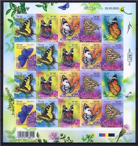 ü ISRAEL 2022 "Butterfly of Israel " Nice self Adhesive sheet with 20 Stamps MNH