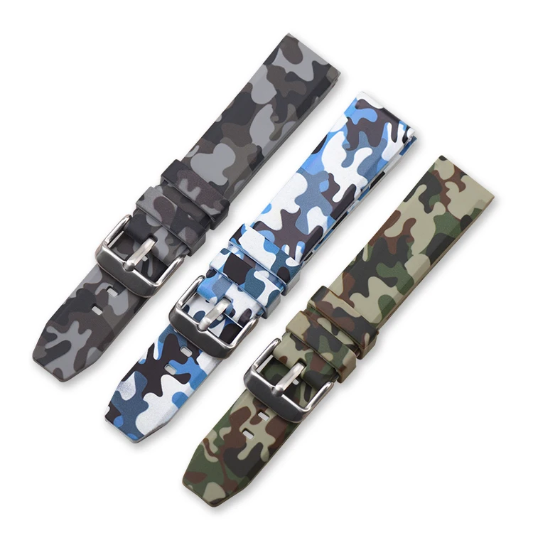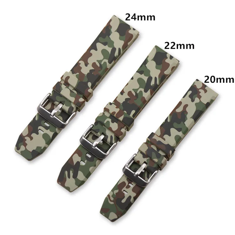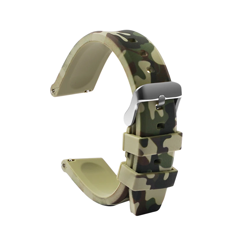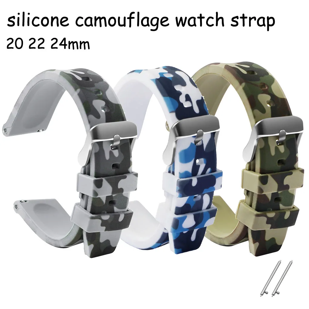 Quick Release Camouflage Watch Strap 20mm 22mm 24mm Silicone Wrist Bracelet Rubber Watch Band Replacement Camo Replacement Belt