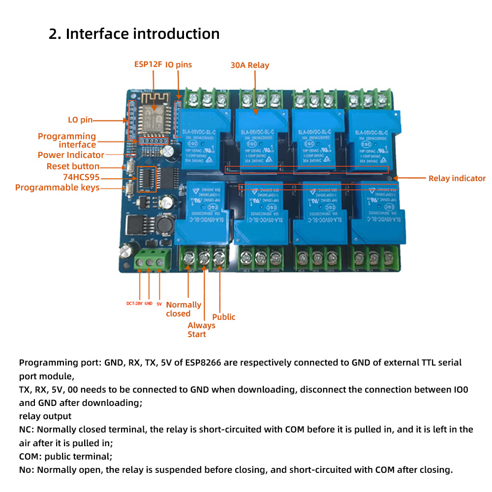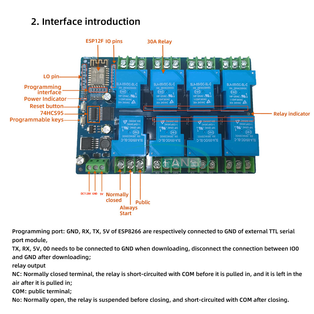 DC 7-28V / 5V ESP8266 WiFi 8Channel 30A Relay Module ESP-12F Development Board