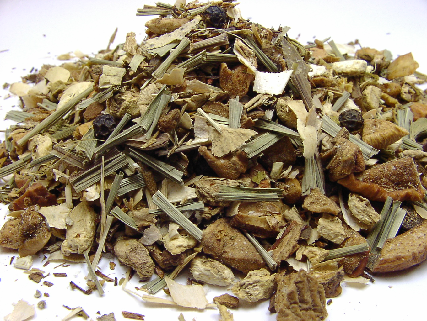 Zutaten Männertraum: Apfelstücke, Rooibos, Ingwerstücke(10%), Bohnenschalen, Zimtrinde, Mistelkraut, Lemongras, Johanniskraut, Aroma, schwarzer Pfeffer, Nelken, Cardamom, Ginsengwurzel(1%), Zitronenschalen