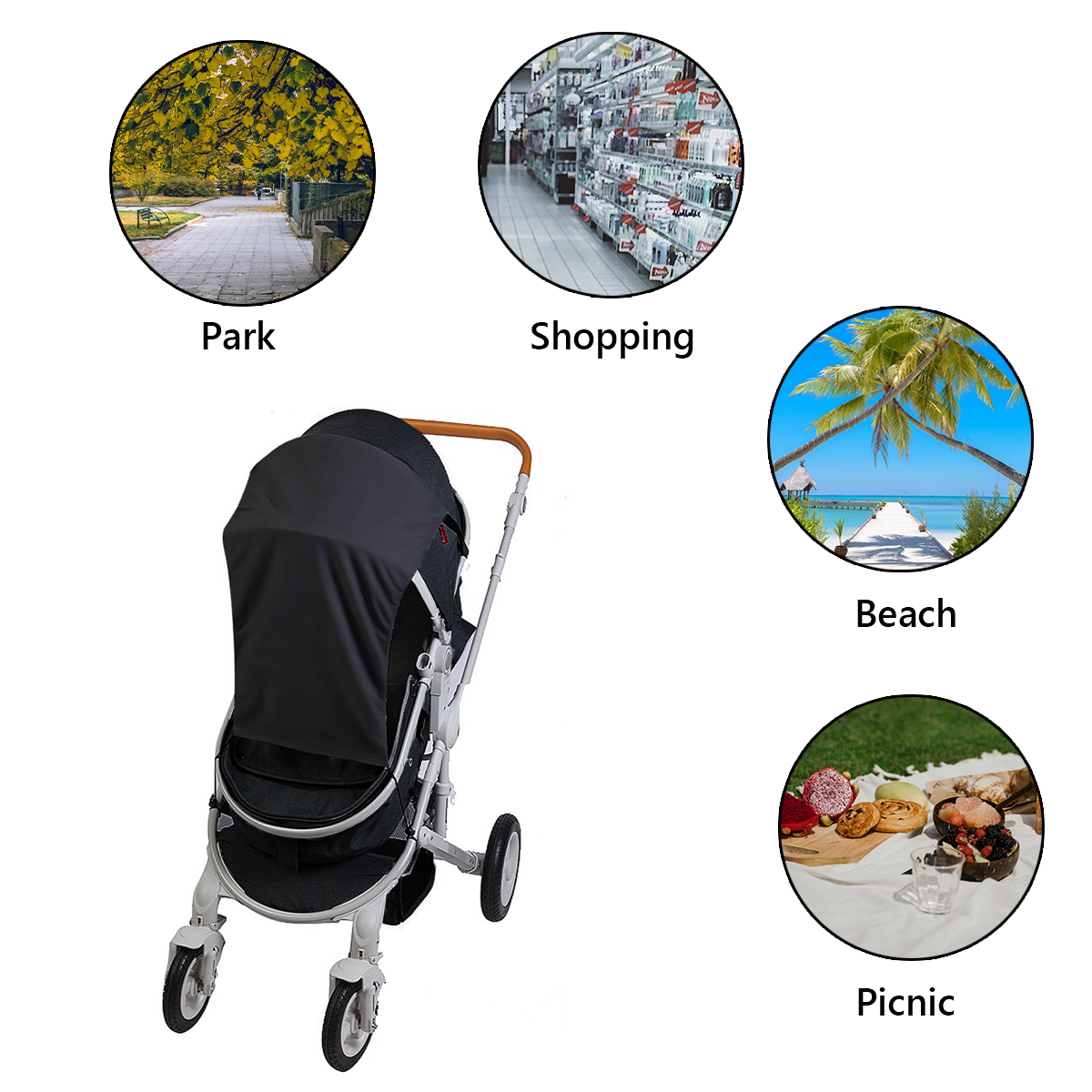 Take your baby for a walk, shopping, camping, vacation, family visit, stroller use or other outdoor activities.