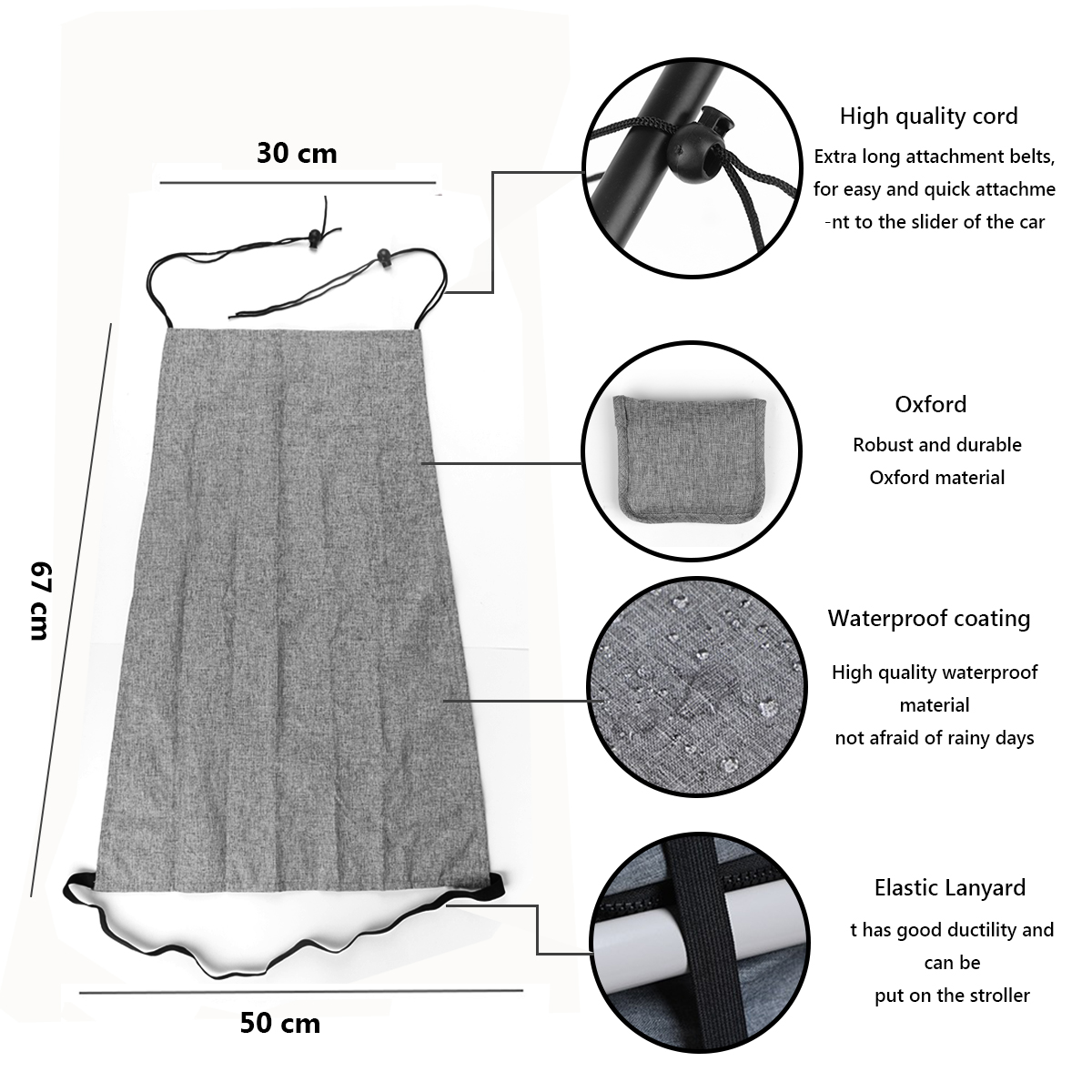 Easy installation: one side is elastic cord, the other side is adjustable shoulder strap, which can be adjusted according to different strollers.