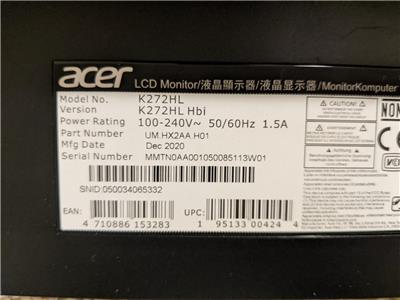 Pulled From: Acer K272HL Hbi 27" Full HD 60Hz VGA DVI HDMI LED Monitor