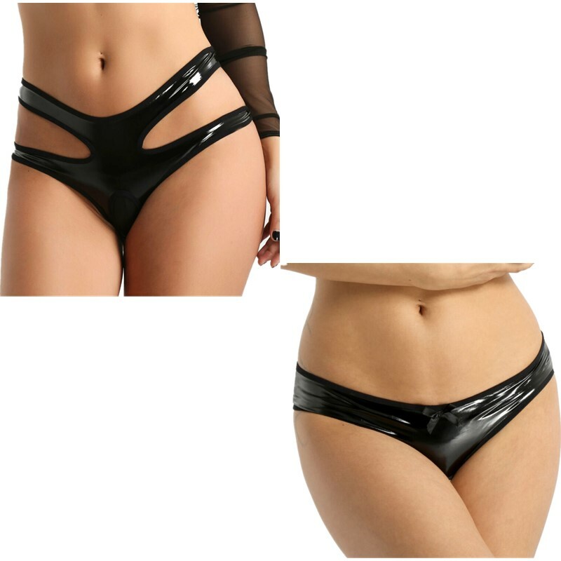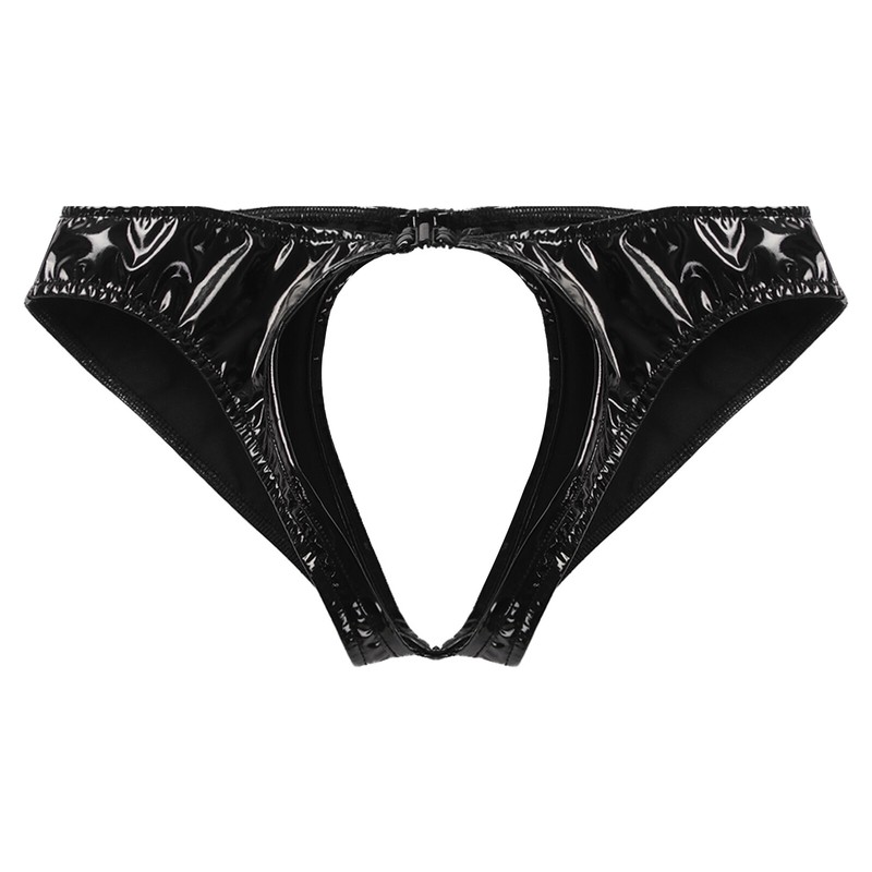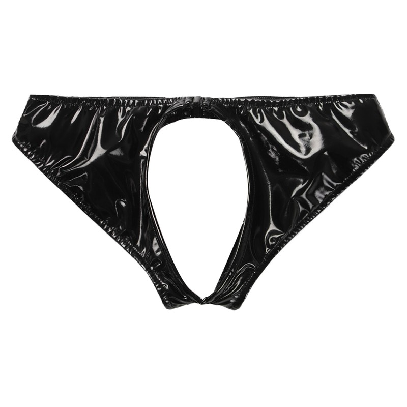 Womens Wet Look Patent Leather Crotchless Thongs Low Waist Open Butt Briefs.