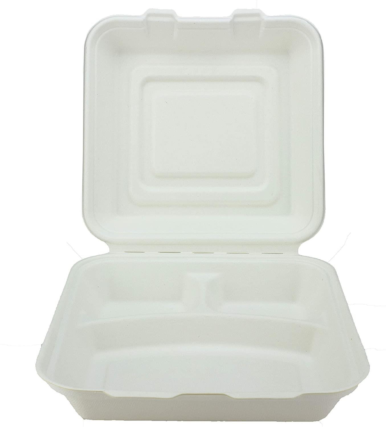 Clamshell 3-Compartment Container:Serve Full Meals In Convenient Style Compostable Food Containers. Perfect To Serve A Main Dish With Sides. The To-Go Containers Makes A Great Choice For Your Daily Meals Or Restaurants, Food Trucks, To-Go Orders, Special Events, And Other Types Of Food Service Environments.