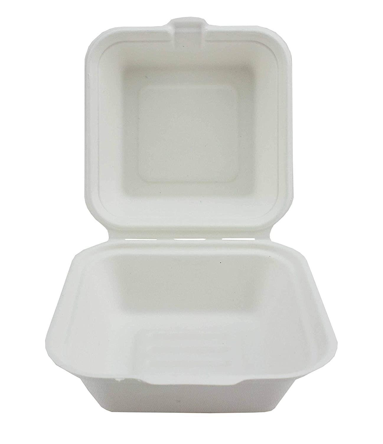 6" Clamshell Container: Serve Meals in Convenient Style Compostable Food Containers. Perfect to serve a Sandwich or Burger. The Biodegradable to-go Containers makes a Great Choice for your Daily Meals or Restaurants, Food Trucks, To-go Orders, Special Events, and other types of Food Service Environments.