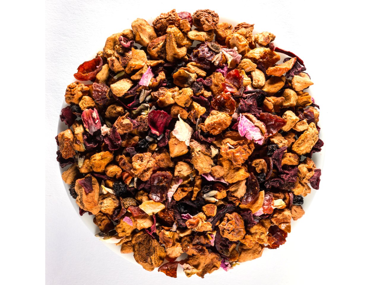 Zutaten: Apfelstücke Bio, Hagebuttenschalen Bio, Rote Bete Bio, Lavendelblüten Bio (5%), Hibiskus Bio, natürliches Heidelbeeraroma, Holunderbeeren Bio, Heidelbeeren Bio (3%), Rosenblütenblätter rosa Bio, natürliches Brombeeraroma