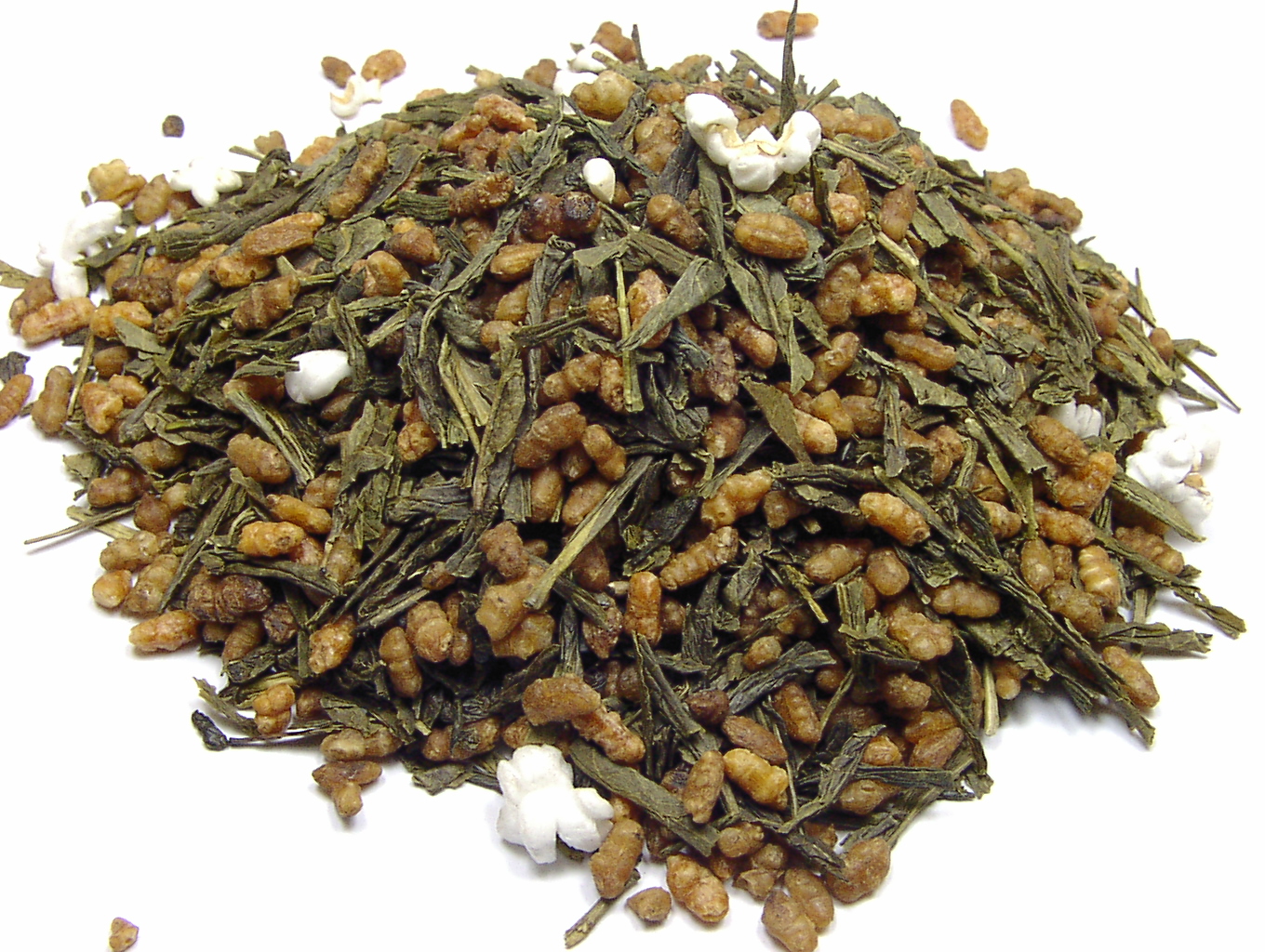 Genmaicha ist eine Mischung aus Sencha und geröstetem Vollkornreis und Popcorn. Dieser grüne Tee hat eine weiche, süssliche Tasse. In China nach japanischer Machart produziert.