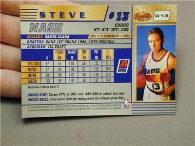 Up for offer is a group of 6 1996-1997 Bowman’s Best Basketball cards. Including in this group of cards is Shawn Kemp, Shaquille O’Neal, Scottie Pippen, Grant Hill, Charles Barkley, and Steve Nash. This was Steve Nash’s rookie year and his card even includes a young Allen Iverson in the photo. None of these cards were the refractor version that they made that year. All cards are in penny sleeves and top loaders and were only taken out to take photos. These cards are being sold RAW and AS-IS. I would estimate that all of these cards if they were to be graded would be a PSA 9 with possibility of a PSA 10 grade. Please be sure to see all photos and feel free to ask any questions