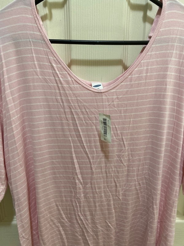 New Women's Old Navy Luxe Pink & White Striped Shirt Stretch Blouse Size XL